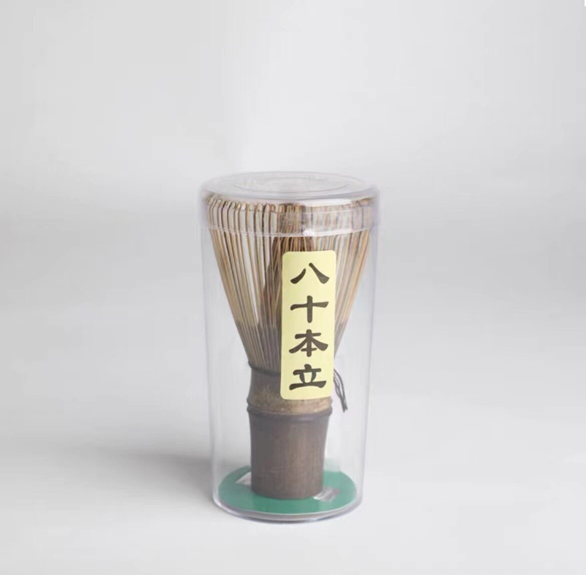 This lovely whisk is an 84-volume prong, good for thin matcha drinks and thicker lattes. Some color variation with natural bamboo.